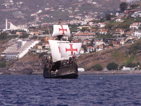 On our way back to Funchal we passed a replica of the Santa Maria, Columbus' ship that took him across the Atlantic. The first to discover the trade wind route which we'll be on in a few weeks. And looking at his little ship and discussing it's ability to sail to windward, or rather it's probable inabilty we marvelled at his confidence in the existence of the circulation of the winds which would enable him to get home again.