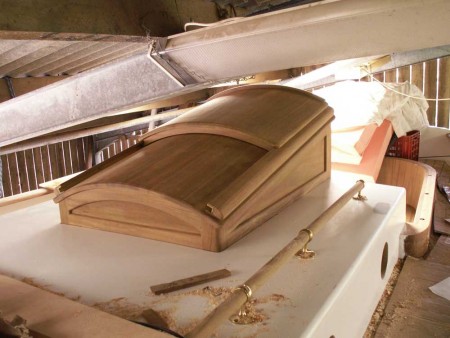 The picture shows the companionway that Mark has been building in his workshop which has now been put in position. It's a masterpeice of joinery in some of the reclaimed teak.